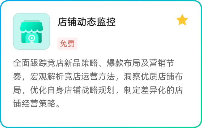 全面跟踪竞店新品策略、爆款布局及营销节奏,宏观解析竞店运营方法,洞察优质店铺布局,优化自身店铺战略规划,制定差异化的店铺经营策略