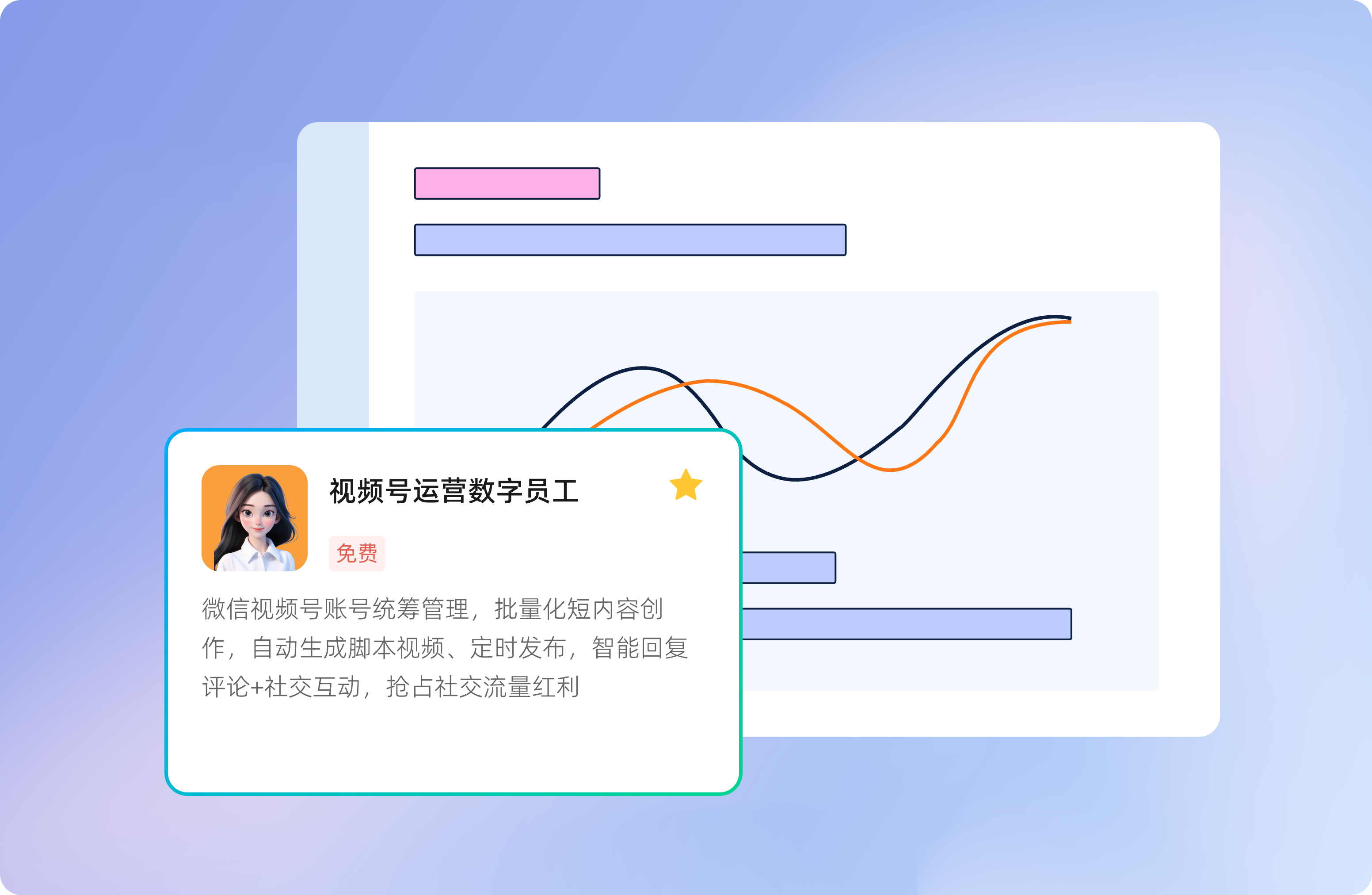 视频号人的专属AI运营助手,以批量化社交化内容生产为核心,一站式解决微信视频号从内容创作、账号互动到数据复盘的全流程问题,解放人力,自动化运行,降本增效双突破