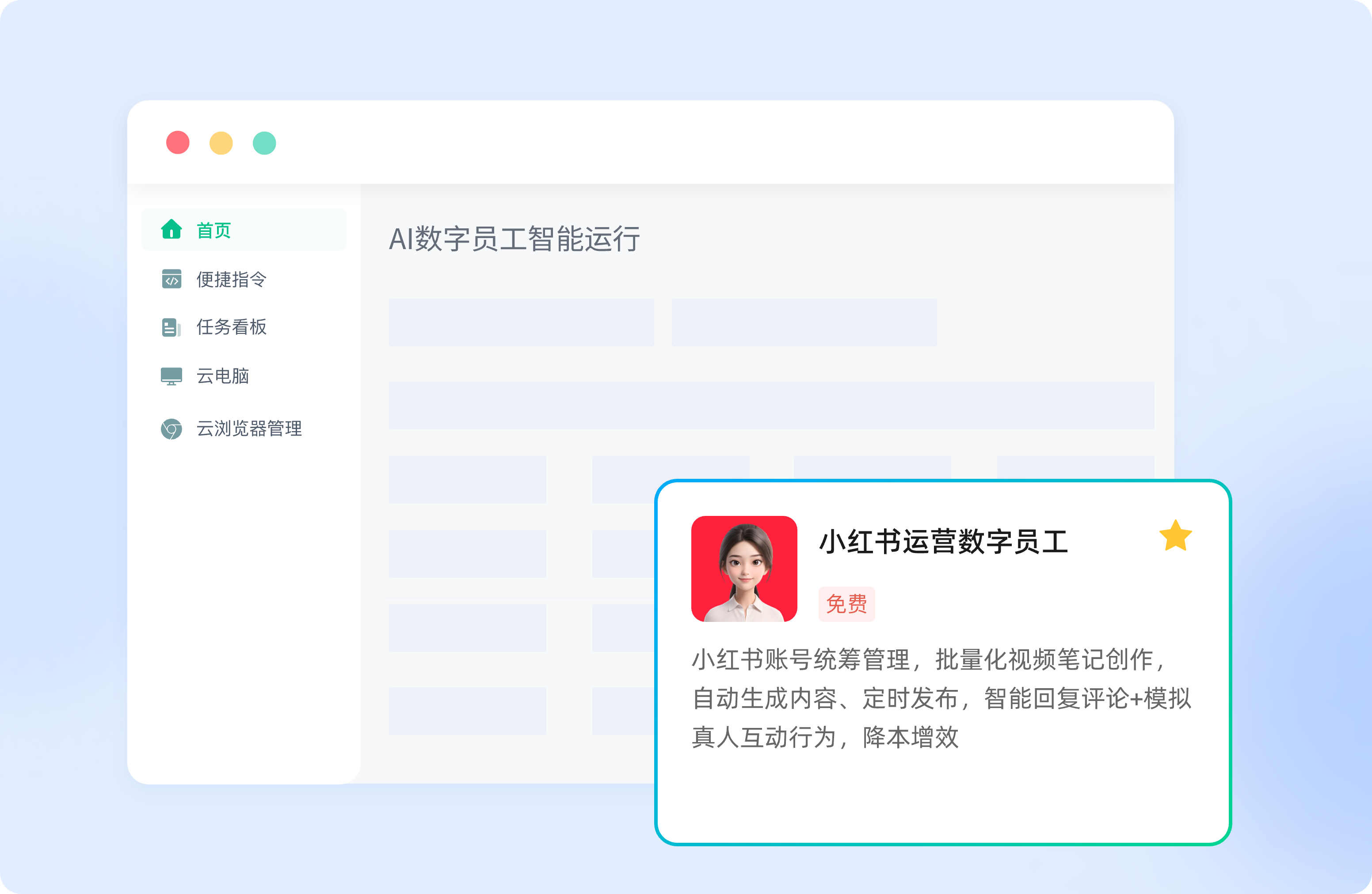 小红书人的专属AI运营助手,以批量化种草内容生产为核心,一站式解决小红书从内容创作、账号互动到数据复盘的全流程问题,解放人力,自动化运行,降本增效双突破