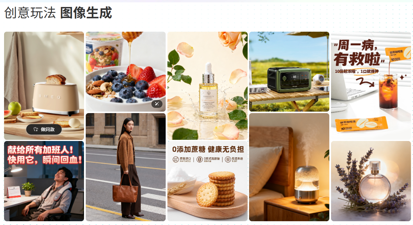 运营小可在“需求框”里打字:“25岁海边度假,淡黄长裙,背影杀,清爽夏意,促销字:今日立减20”。不用PSD、不用参考图,点“生成”。47秒后,左侧跳出4张横版主图:构图、光线、促销字、留白全部就位,点击率预测值写在右上角——4.9%,比店铺均值高1.2个百分点。