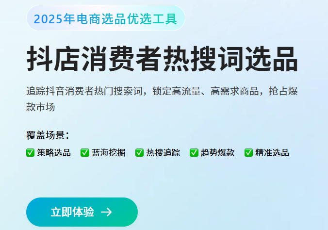 马上免费体验抖店消费者热搜词选品:https://www.iqinghu.com/agent/details/23
