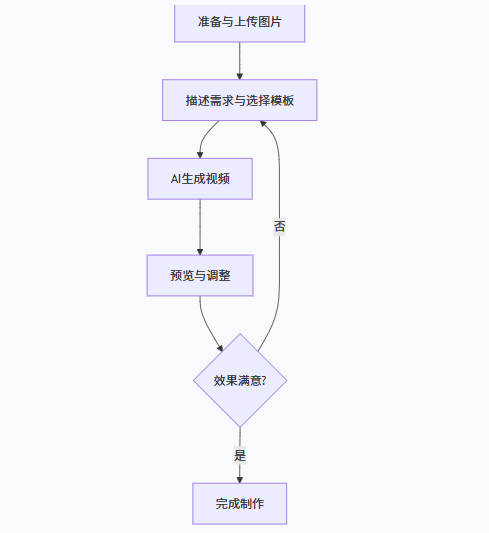 使用青虎AI LinkPix从图片生成视频,流程非常直接,核心步骤如下面的流程图所示:
