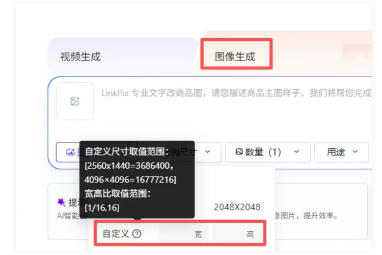 支持手动输入任意图像尺寸,满足个性化创作需求,摆脱固定比例限制;