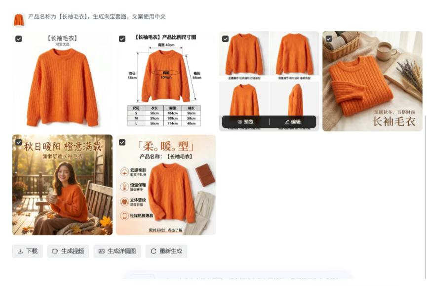 点击按钮立即生成,覆盖电商上架、推广、详情页制作等全场景视觉需求,生成图片可直接下载使用,无需二次修改!