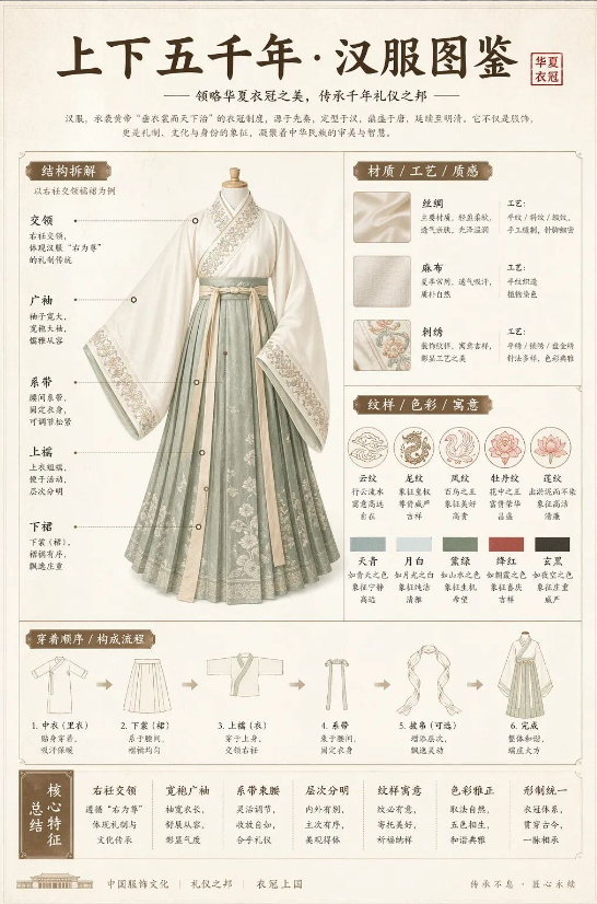 提示词:设计一张汉服结构拆解图鉴